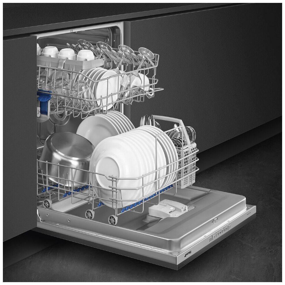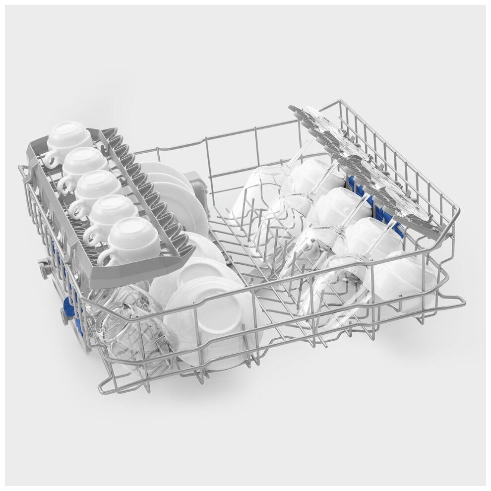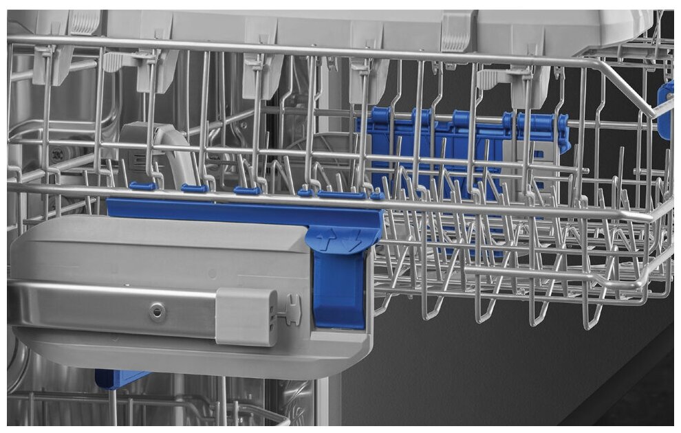- Особенности конструкции внутренняя поверхность из нержавеющей стали, использование средств 3 в 1, регулируемая по высоте корзина для посуды