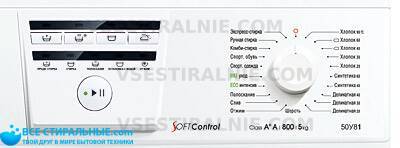 - стирка деликатных тканей, стирка спортивной одежды, стирка верхней одежды, программа стирки смешанных тканей, быстрая стирка, предварительная стирка, программа удаления пятен