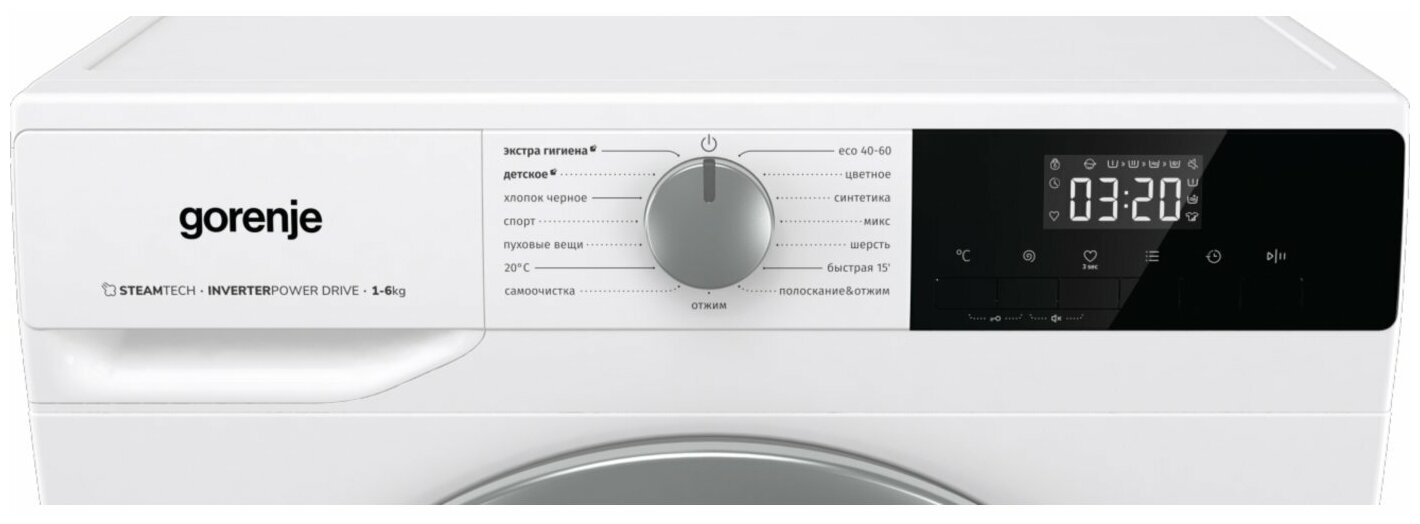 - стирка смешанных тканей, стирка пуховых вещей, экономичная программа, стирка спортивной одежды, быстрая стирка, стирка детских вещей, стирка синтетики, стирка черных вещей, стирка хлопка, стирка шерсти, отжим, полоскание, гипоаллергенная стирка