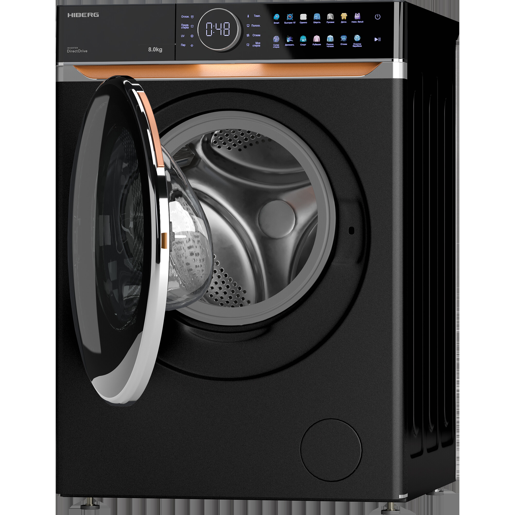 - очистка барабана интеллектуальное управление стиркой выбор температуры стирки выбор скорости отжима контроль за уровнем пены сигнал окончания стирки отложенный старт контроль баланса