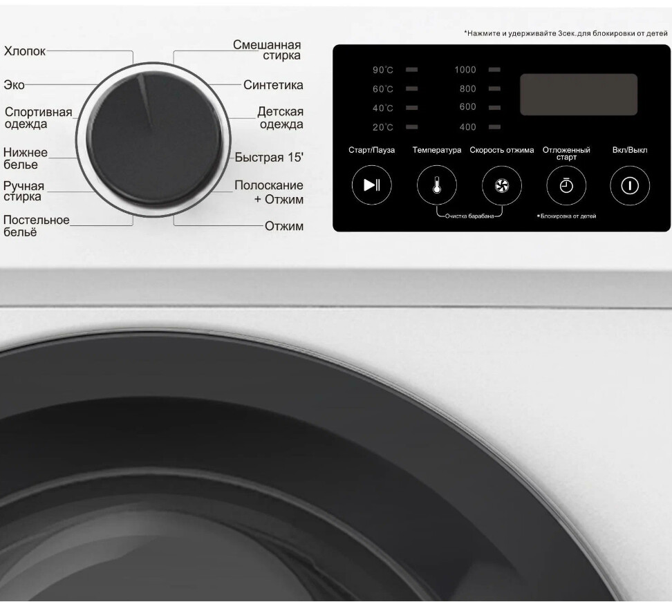 - Программыбыстрая стирка, дополнительное полоскание, полоскание, ручная стирка, стирка деликатных тканей, стирка детских вещей, стирка пуховых вещей, стирка синтетики, стирка смешанных тканей, стирка спортивной обуви, стирка спортивной одежды, стирка хлопка, стирка шерсти, экономичная программа