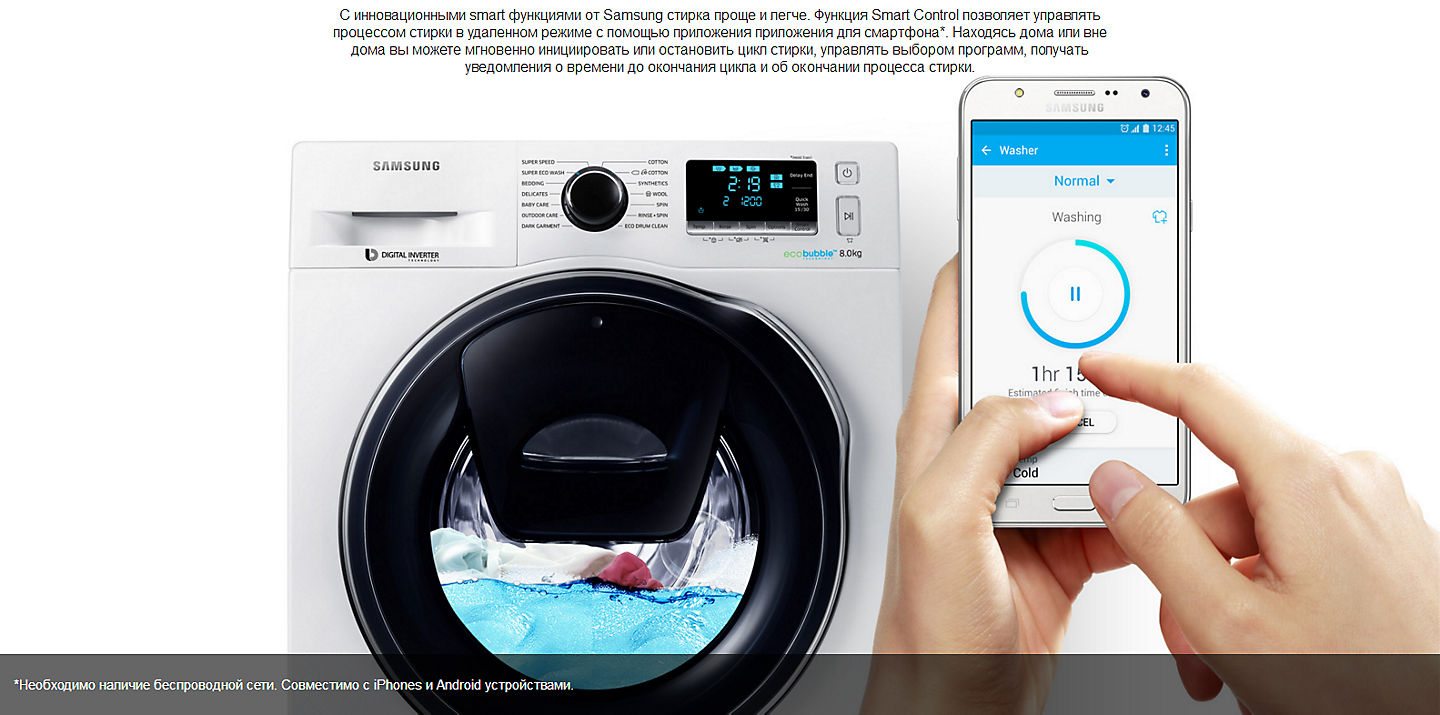 - Установка времени завершения стирки