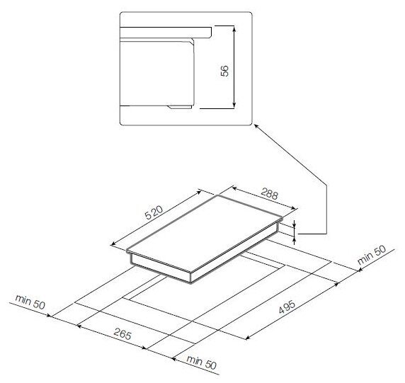 - Размеры для встраивания (ШхГ)